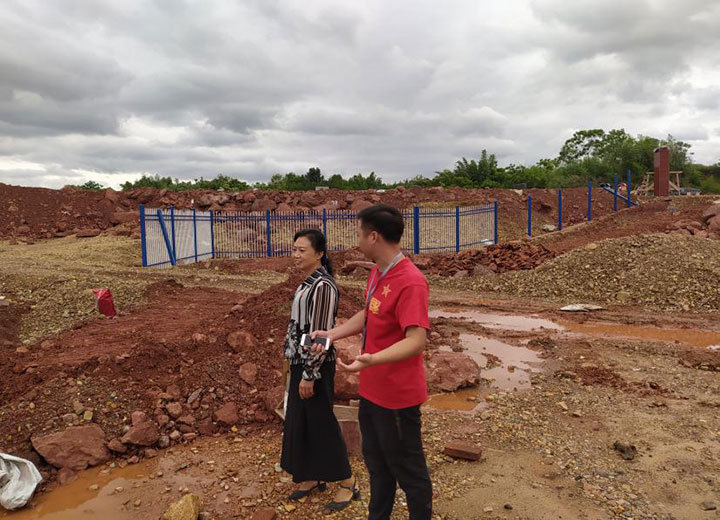 (上图谢健在现场协调砂石堆场建设工作。)