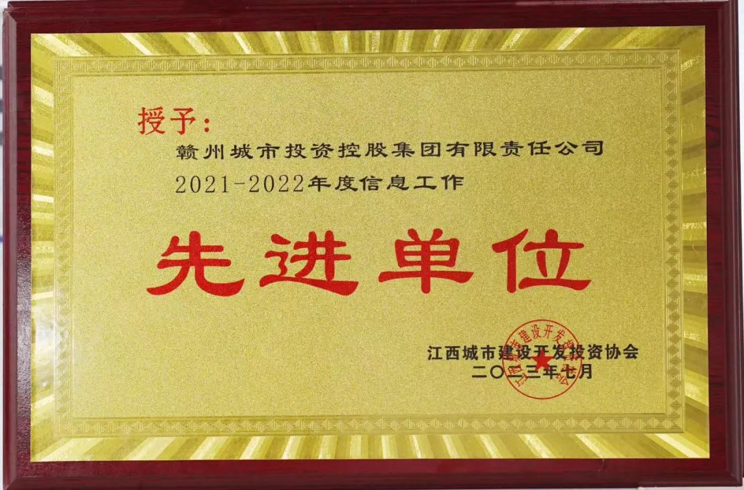 7月25日,江西城投协会2022—2023年信息工作会议暨表彰大会顺利召开,赣州城投集团荣获江西城投协会2021-2022年度和2022-2023年度信息工作先进单位,集团文化宣传部1名同志连续两年被授予“信息工作先进个人”称号,2名同志被授予“优秀信息员”称号,这是江西城投协会对集团近几年信息工作的高度肯定和认可。