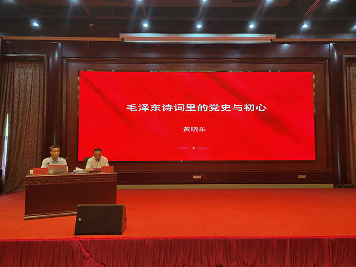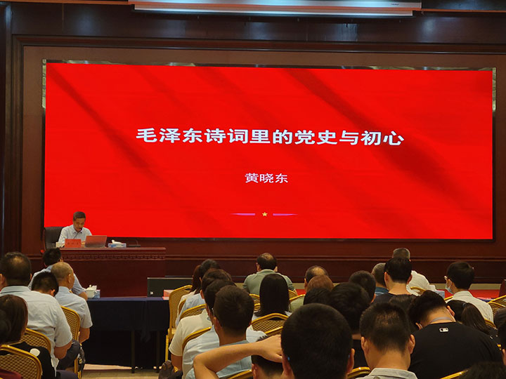 黄晓东同志以《毛泽东诗词里的党史与初心》为主题,以毛泽东同志的革命道路为主线,品读毛泽东同志不同时期的诗词,从离愁别恨里的党史与初心等10个方面,回溯伟人立志报国救亡、书生意气的青年时代、艰苦卓绝的革命峥嵘岁月、如火如荼的社会主义革命和建设历程,彰显伟人独具魅力的个性情怀和豪迈气概,阐述了共产党人的初心与使命。