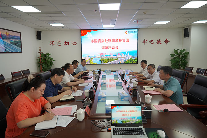近日,市国资委党委书记、主任吴诗东一行赴赣州城投集团调研指导环保项目推进等方面工作,市国资委副主任官雪辉、一级调研员吕小林及相关科室负责人陪同调研。赣州城投集团党委副书记(主持工作)、总经理李国泉,集团财务总监梁晓斌出席座谈会,集团战略发展部、风险防控部、生态投资公司相关人员等参加会议。