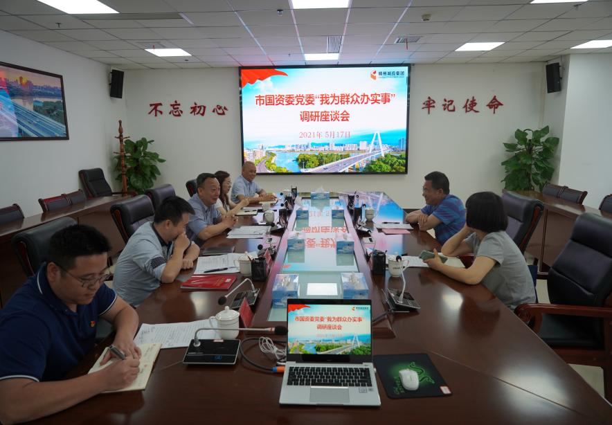 5月17日,市国资委党委委员、副主任王全生到赣州城投集团调研“我为群众办实事”实践活动开展情况,规划发展科负责人陪同。赣州城投集团党委副书记黄家伟介绍了党史学习教育工作情况和“我为群众办实事”实践活动开展情况,集团文化宣传部、党群工作部、工程管理公司党总支有关人员等参加座谈。