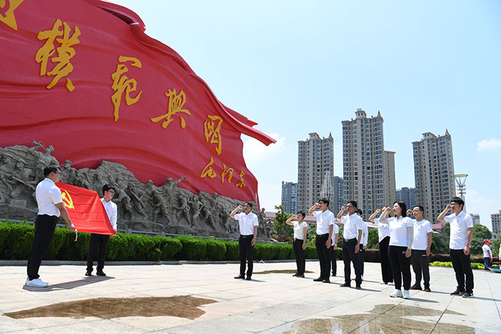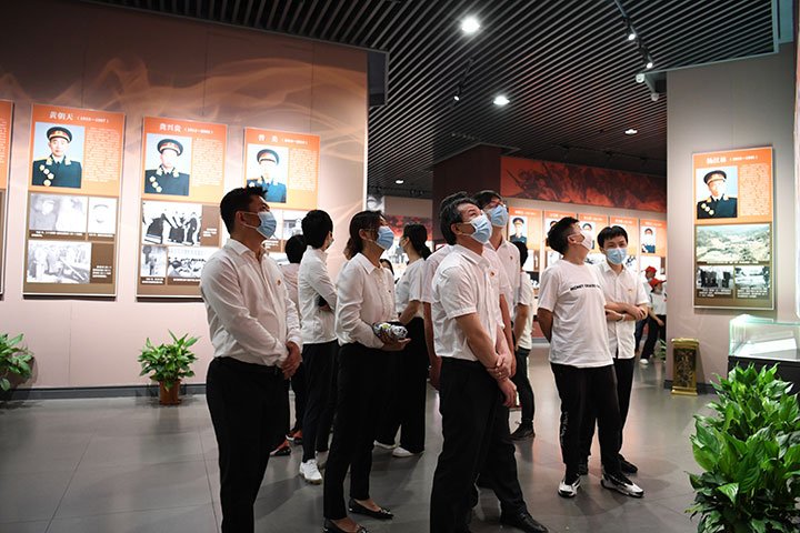 在将军园三面军旗及69位革命先烈冲锋陷阵的大型群雕前,大家重温入党誓词,铿锵誓言在将军广场回荡,党员们对自身的担当和使命都有了更加深刻的领悟。