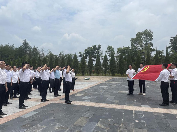 大家首先前往苏区时苏维埃政府工作的模范乡——长冈乡,领悟中国共产党人深厚的为民情怀、科学的思想方法和务实的工作作风。随后大家怀着对革命先烈无比崇高的敬意瞻仰了中央苏区烈士陵园。在烈士纪念碑前,整齐列队,怀着无比崇敬的心情,向革命先烈敬献花篮,默哀并三鞠躬,深切缅怀革命先烈。全体党员在庄严的党旗下,高举右拳重温入党誓词,再次接受心灵的净化和洗礼,铭记共产党员初心使命。工程管理公司一、二支部还宣讲了党史故事,讲述了江善忠“死到阴间不反水,保护共产党万万年”和李美群“马前托孤女英雄”的英烈事迹。