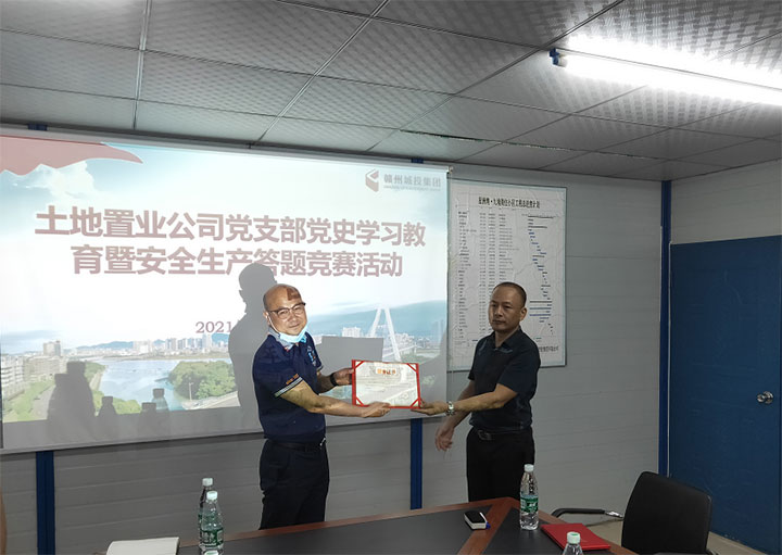 为进一步巩固深化党史学习教育成果,促进建党100周年期间的安全生产工作,日前,土地置业公司党支部在星洲湾·九境项目部会议室举办建党100周年党史学习教育暨安全生产答题竞赛,土地置业公司全体员工,星州润达集团、赣州建工集团、星洲地产部分代表等20余人参加。
