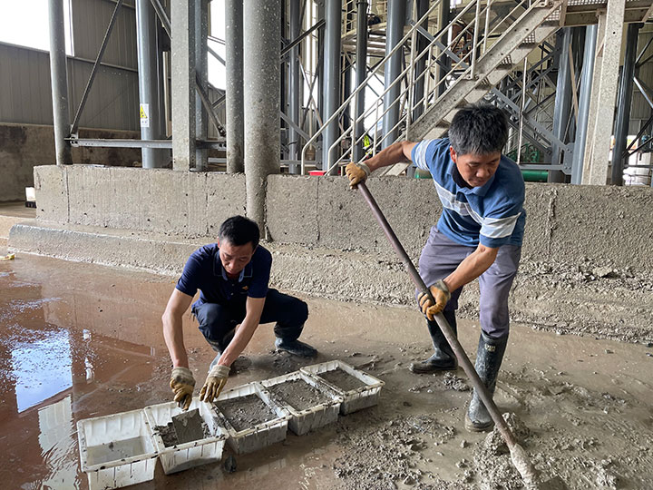 6月5日,利用周末休息时间,曹惠组织生产一线党员加班加点,利用生产过程中产生的废料混凝土,将其变废为宝进行“加工”,制成60余块砖。