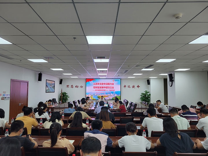 在收听收看庆祝中国共产党成立100周年大会直播盛况后,为学深悟透习近平总书记发表的重要讲话精神,7月1日下午,赣州城投集团党委副书记黄家伟以《从百年党史中汲取力量,在转型发展中建功立业》为题,上了一堂精彩党课。集团机关一支部、建筑设计院公司党支部、天成设计院党支部全体党员、入党积极分子、入党申请人以及集团其他支部的党员代表等共计70余人聆听党课。