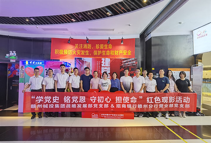 近日,为庆祝中国共产党成立100周年,赣州城投集团战略发展部党支部联合招商银行赣州分行营业部党支部开展“学党史、铭党恩、守初心、担使命”红色观影活动,从党史题材电影《1921》中回望初心,致敬百年。战略发展部党支部党员、入党积极分子及入党申请人参加本次活动。