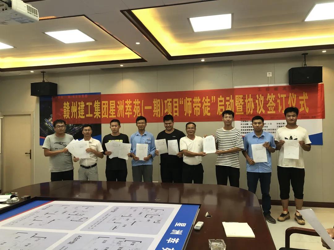 7月14日,在赣州建工集团星洲萃苑(一期)项目部举行的“师徒协议”签订仪式上,8名业务技能突出且拥有五年以上工作经验的师傅和10名青年员工分别签订了师徒协议书,完成师徒结对。