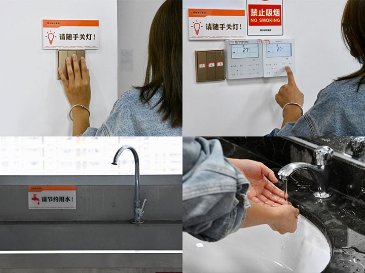 在赣州城投集团办公区域6—14楼、各子公司(含合资子公司)以及工程项目部办公区,在电灯开关边上、卫生间洗手区等区域,显眼处均张贴了各种节能降耗宣传标语,引导职工节约用水、用电,避免使用一次性纸杯、餐盒等消耗品,鼓励职工使用新能源汽车、多乘坐公共交通工具出行,减少使用私家车,倡导将绿色低碳理念融入生活习惯。广大职工也纷纷从身边点滴的小事做起,将节能减排理念延伸到工作、生活的各环节,在集团上下形成厉行节约、反对浪费的良好局面。