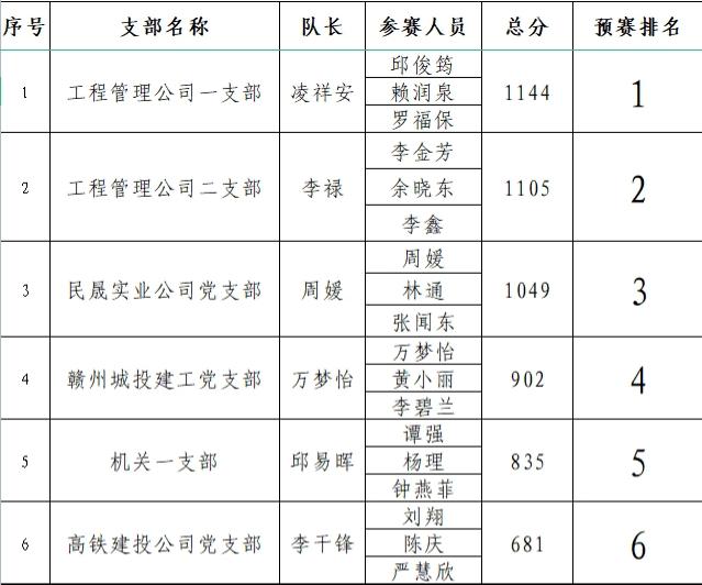 (赣州城投集团党委党史学习教育知识竞赛预赛结果)