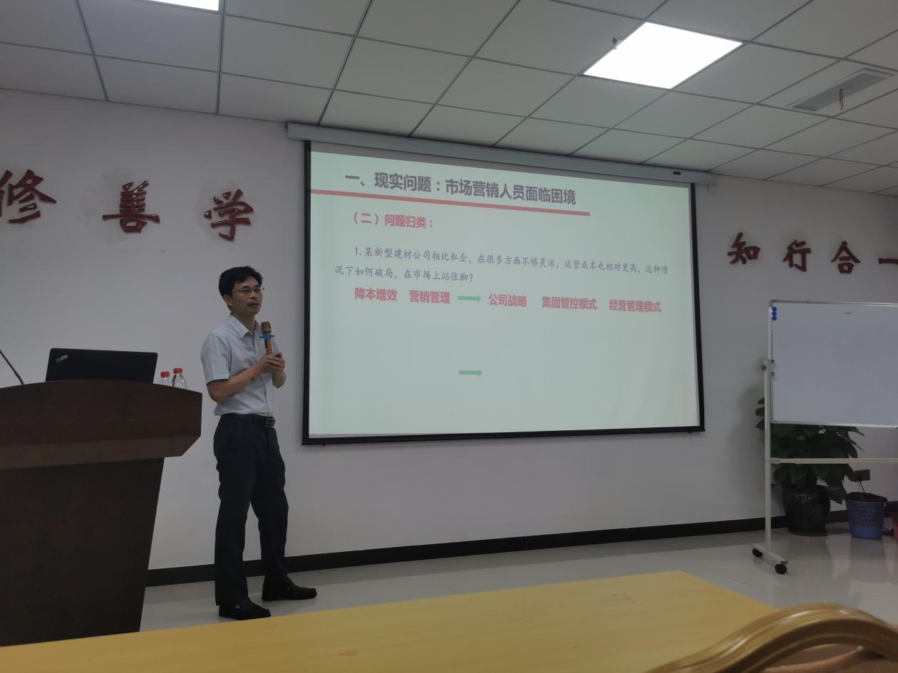 在培训会上,邹国良教授阐述了市场营销人员面临的困境、全面梳理了目前公司发展可能存在的问题,从业绩持续改善及市场营销方面作为突破口,提出了破解问题的工作方法及应用。课堂上,为活跃学习气氛,邹国良教授与学员进行互动探讨,并对提出的问题进行了细致解答。