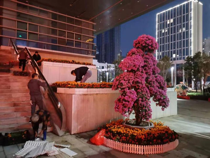 工程公司项目部克服当前人员少、项目建设工作任务重的困难,安排专人日夜施工,及时完成了外围绿化提升,联合民晟实业公司实施氛围营造工程,打造了一个庄重喜庆的会场氛围。