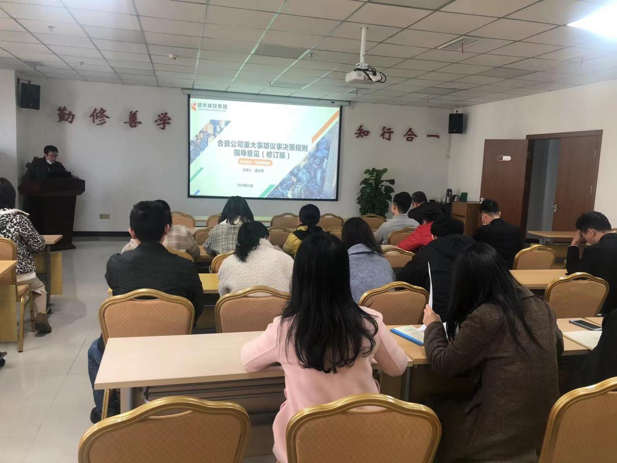 日前,赣州城投集团党委党校举办合资公司重大事项议事决策规则指导意见专题培训,集团经营管理部人员对相关内容进行宣贯。集团相关业务部门、一级子公司经营管理人员以及集团外派人员等参加此次培训。