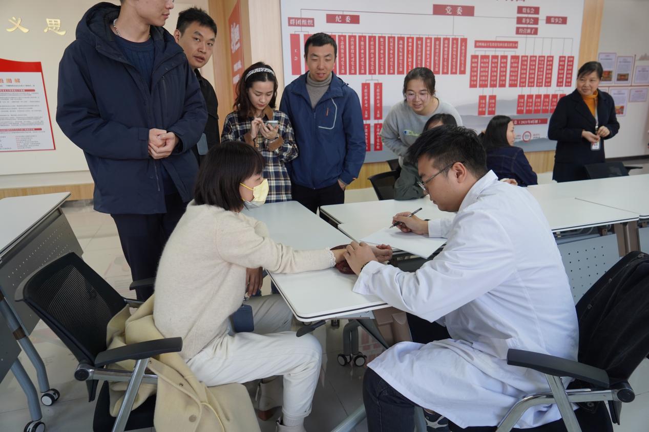 本次义诊活动采取一对一问诊模式,医护人员为就诊员工进行把脉、听诊、测血压血糖等常规检查,根据实际症状进行了手诊、面诊、舌诊、脉诊等针对性检查。此次活动还提供了拔罐、推拿按摩、经络调理、穴位疗法等健康服务,并科普疾病预防、中医养生保健等知识。