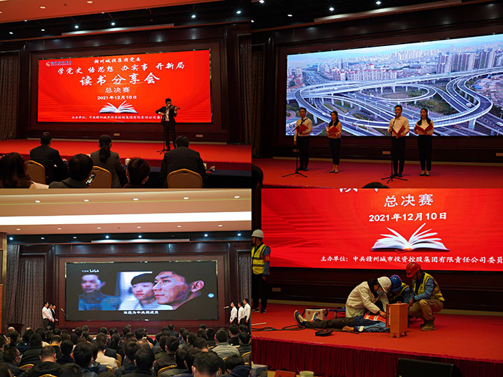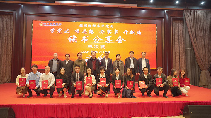12月10日上午,赣州城投集团党委"学党史 悟思想 办实事 开新局"读书分享会总决赛圆满落幕。市国资委党委委员、副主任黄晓东和相关科室负责人、市国资系统其他集团分管领导以及党群口负责同志莅临指导,集团党委副书记黄家伟出席活动,集团全体党员到现场观看。