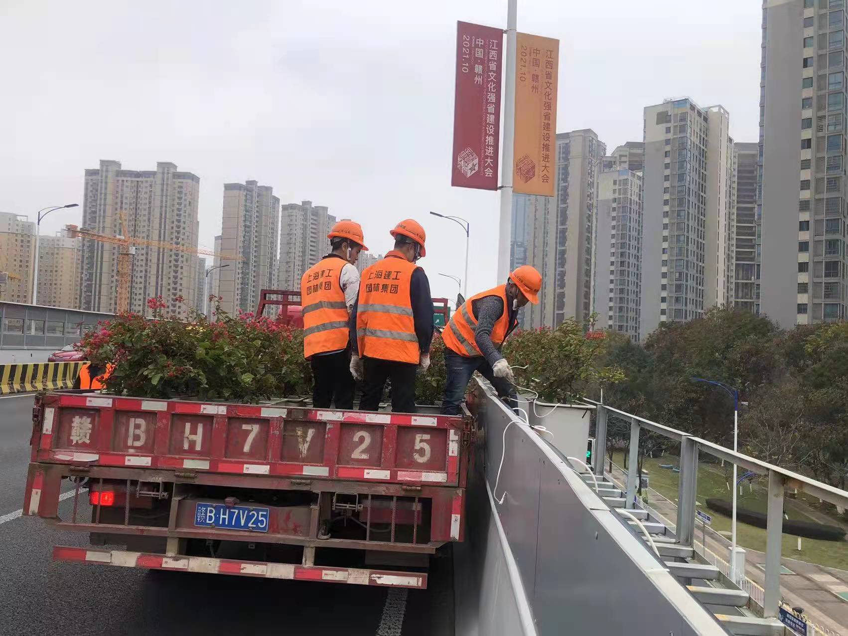 12月25日一大早,在赣南大道快速路与东江源大道快速路互通立交,赣州城投集团分了5组20人,对在现场的三角梅进行迁移。赣州城投集团的工作人员介绍说:“迁移的时候,我们要特别注意对花箱及三角梅成品的保护,同时,我们采取了设置安全锥、安全导向牌等措施,确保现场施工安全。”