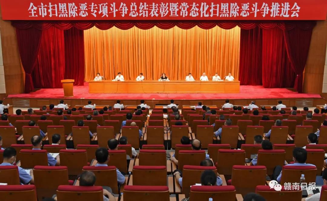 7月9日下午, 全市扫黑除恶专项斗争总结表彰暨常态化扫黑除恶斗争推进会召开。市委书记吴忠琼出席会议并讲话。她强调,要深入贯彻落实习近平总书记重要指示精神和中央、省委的决策部署,担当实干、久久为功,推动常态化扫黑除恶斗争取得更大成效,加快建设更高水平的平安赣州、法治赣州,为建设革命老区高质量发展示范区营造更加安全稳定的环境。